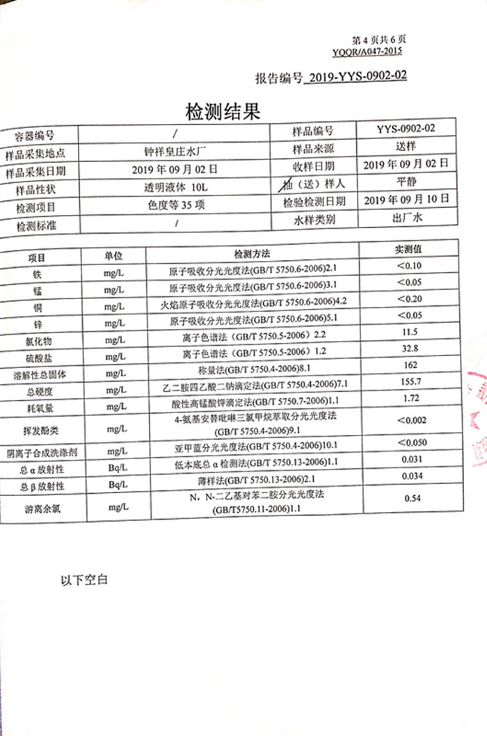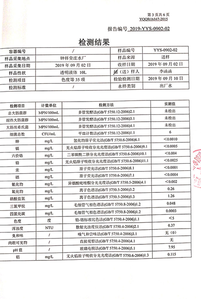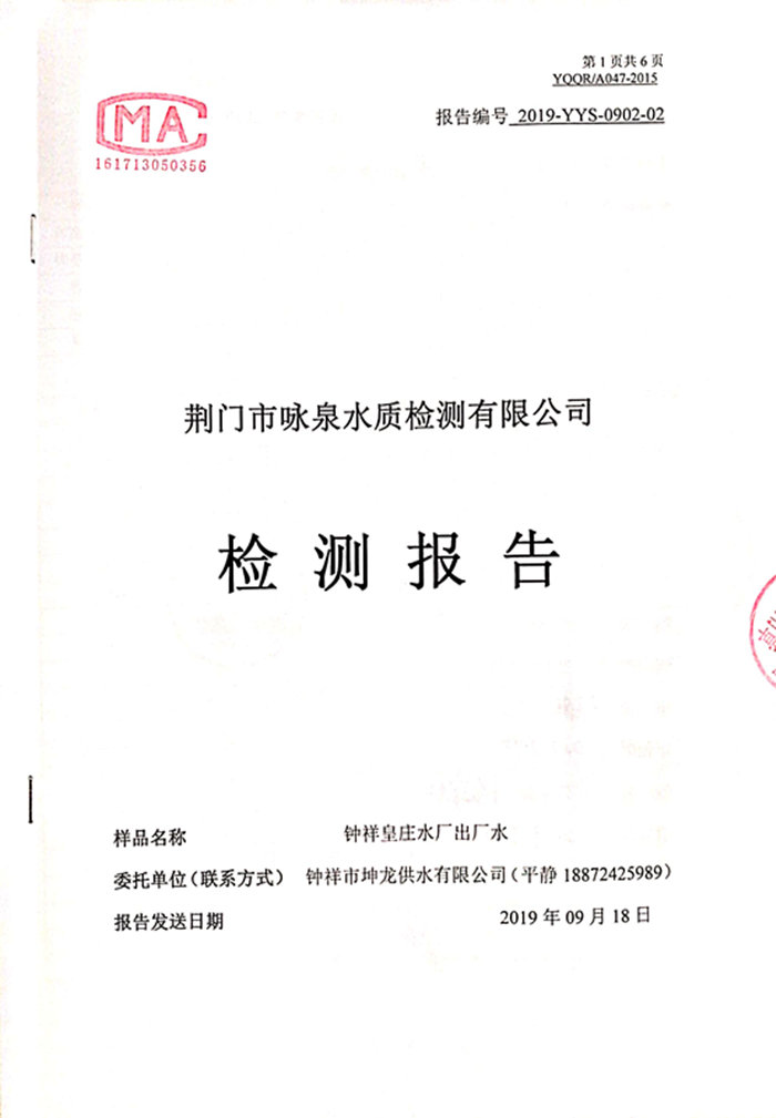 2019年9月10日湖北省城市供水水質(zhì)監(jiān)測(cè)網(wǎng)荊門監(jiān)測(cè)站檢測(cè)報(bào)告(生活飲用水)