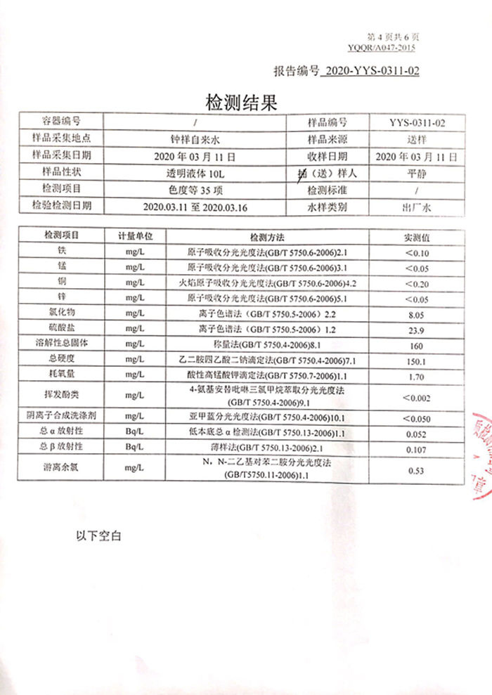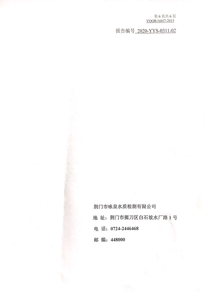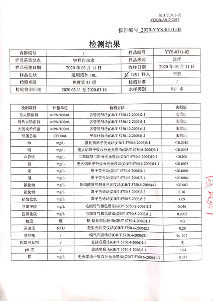 2020年3月11日湖北省城市供水水質(zhì)監(jiān)測網(wǎng)荊門監(jiān)測站檢測報告(生活飲用水)