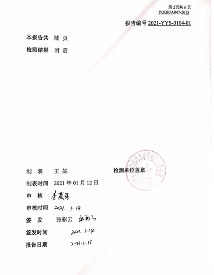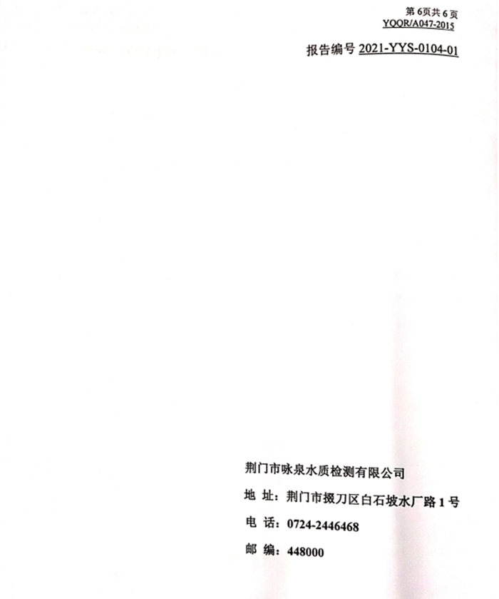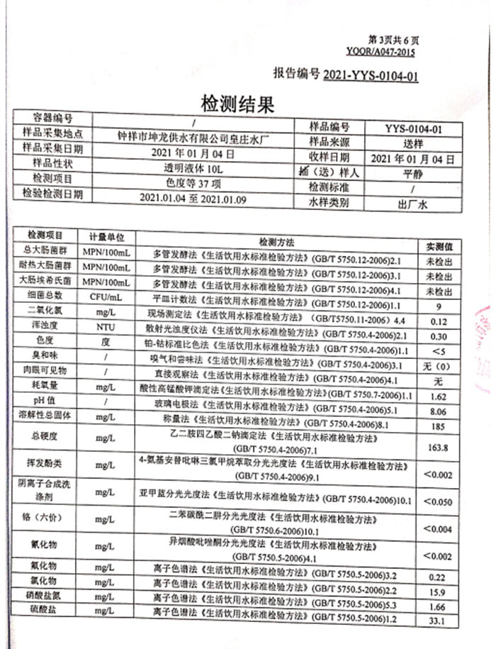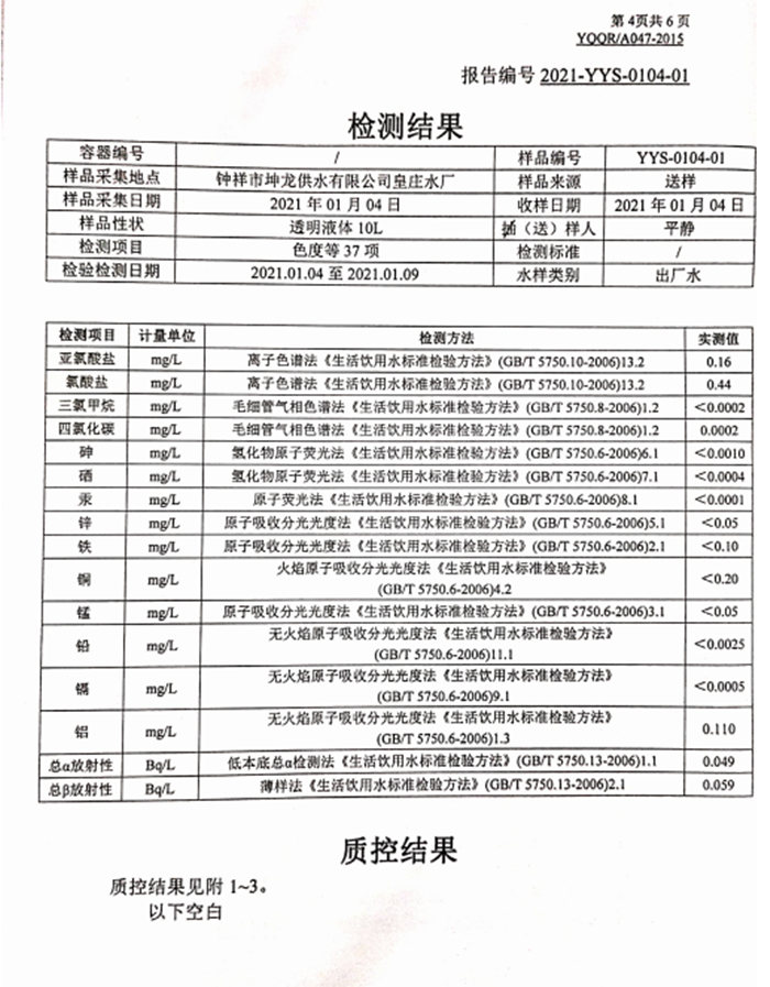 2021年1月4日湖北省城市供水水質(zhì)監(jiān)測網(wǎng)荊門監(jiān)測站檢測報告(生活飲用水)
