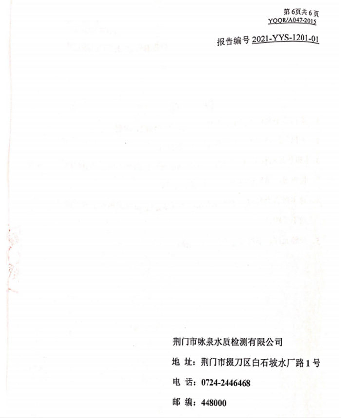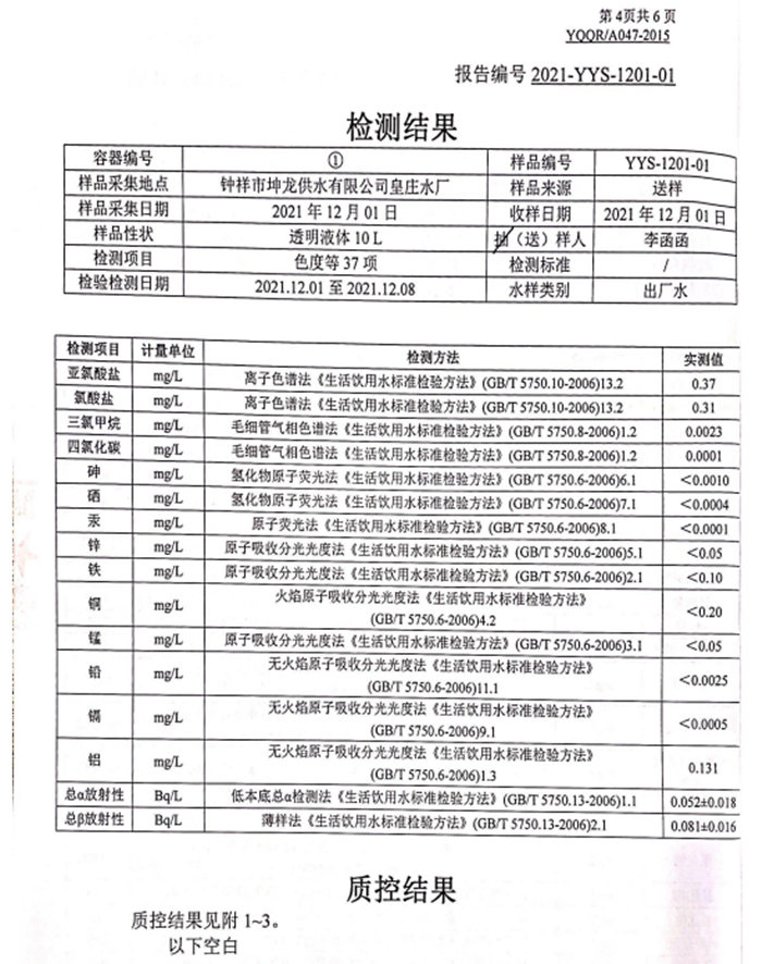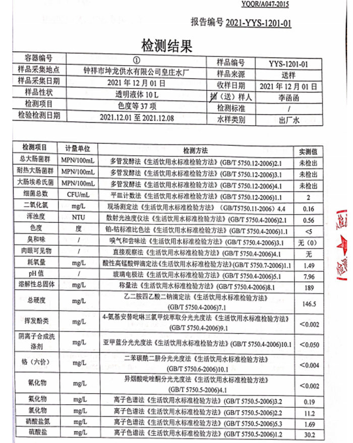 2021年12月1日湖北省城市供水水質(zhì)監(jiān)測網(wǎng)荊門監(jiān)測站檢測報告(生活飲用水)