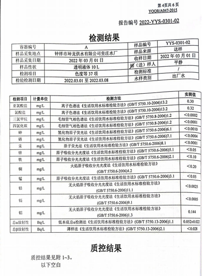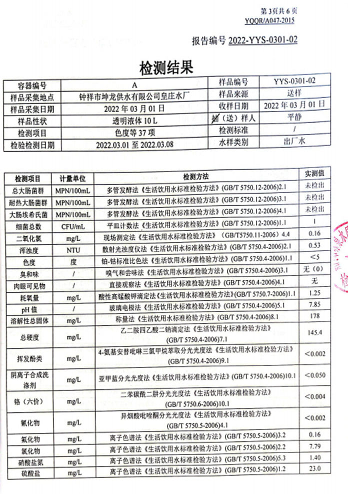2022年3月1日湖北省城市供水水質(zhì)監(jiān)測網(wǎng)荊門監(jiān)測站檢測報(bào)告(生活飲用水)