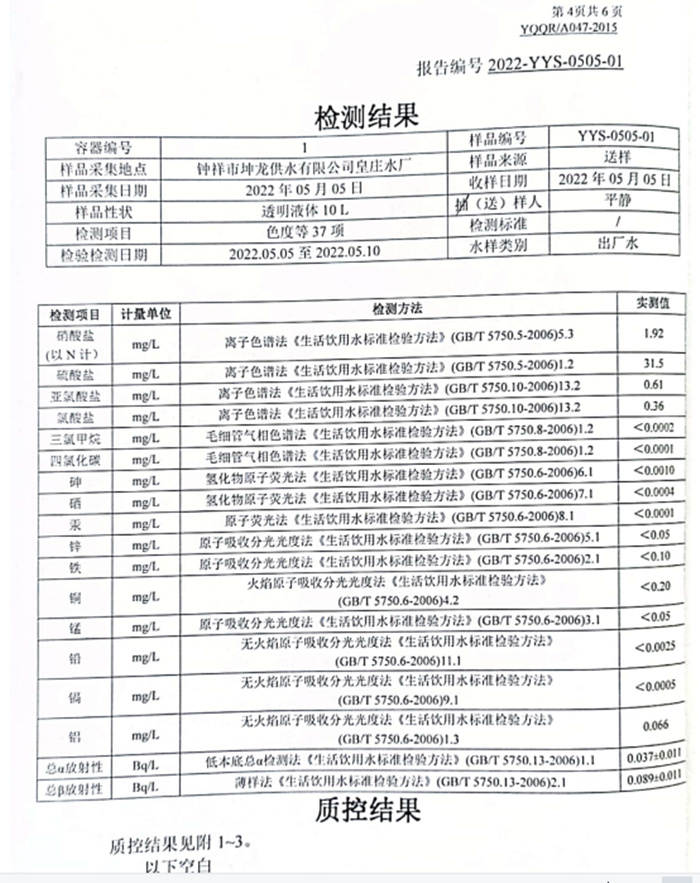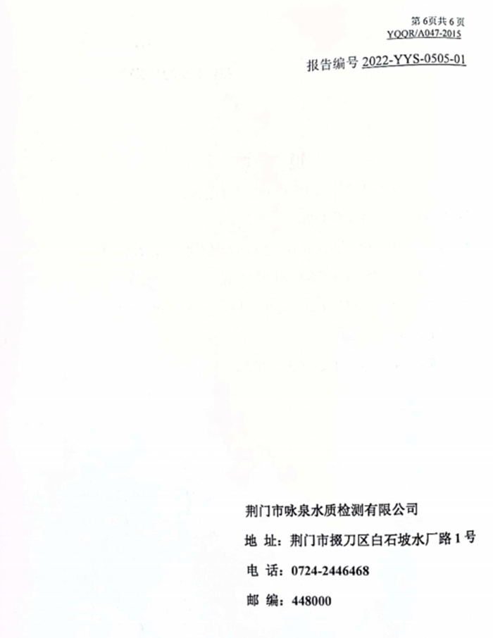 2022年5月5日湖北省城市供水水質(zhì)監(jiān)測網(wǎng)荊門監(jiān)測站檢測報(bào)告(生活飲用水)