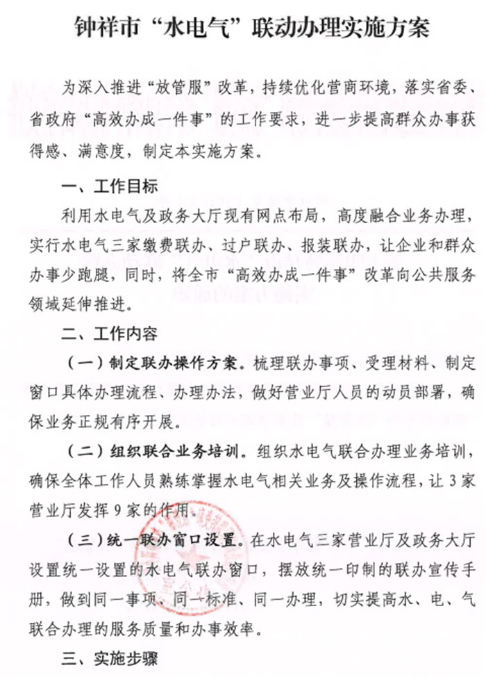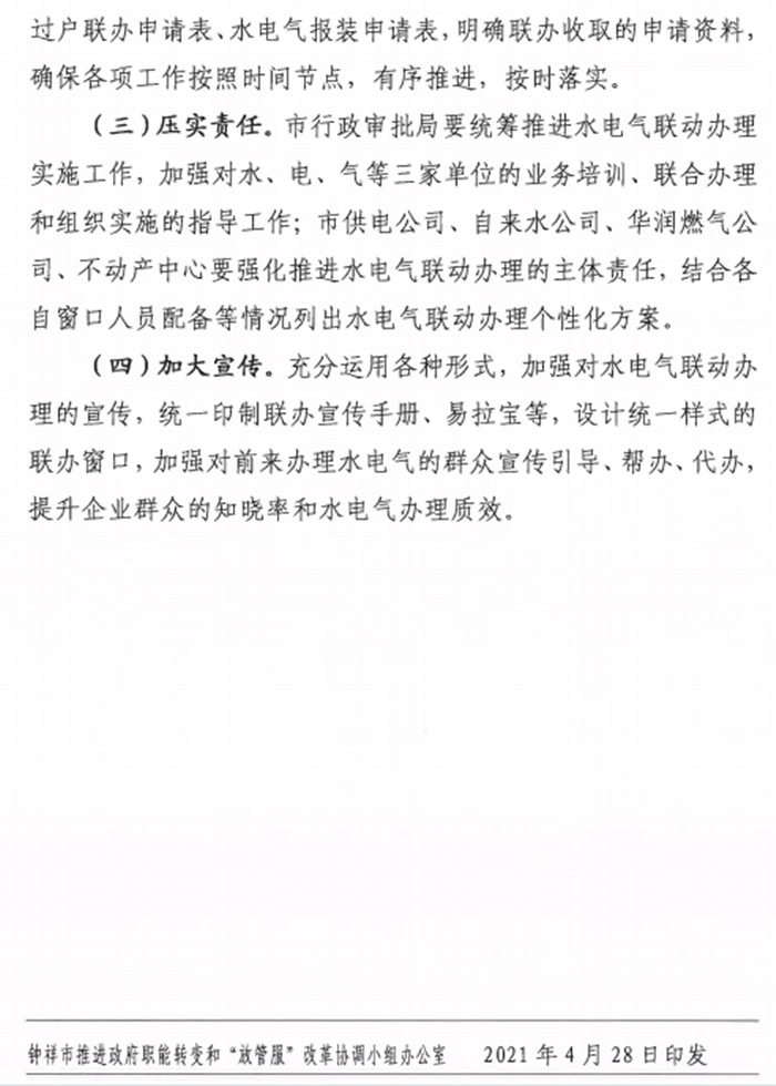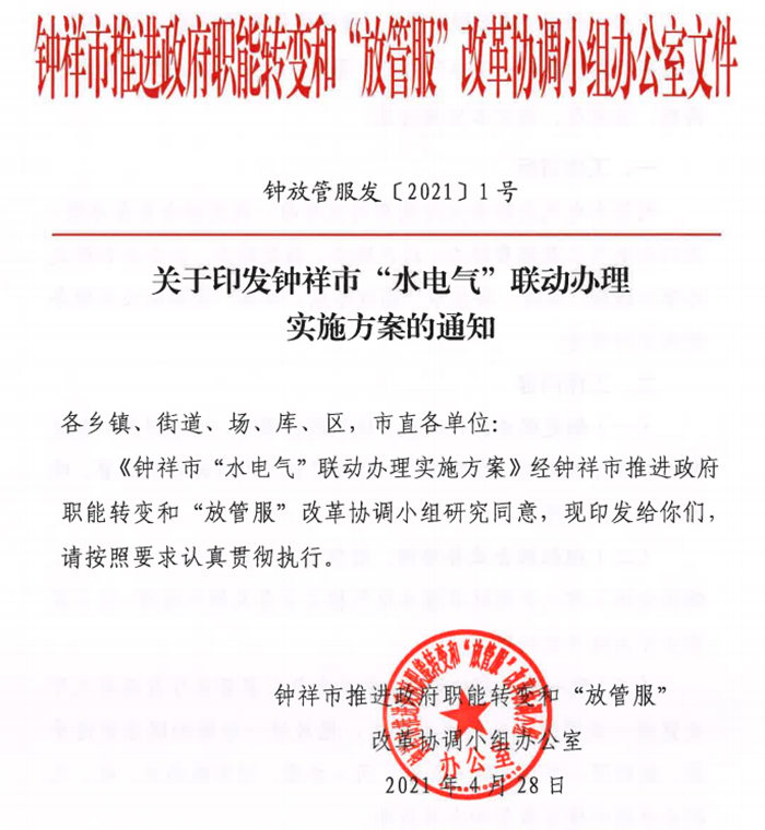鐘祥市“水電氣”聯(lián)動(dòng)辦理文件